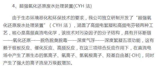 超強(qiáng)氧化還原廢水處理裝置(CYH法)處理各種有機(jī)廢水、各種重金屬?gòu)U水