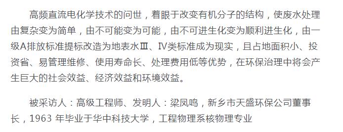 中國(guó)高新技術(shù)網(wǎng)發(fā)布:《關(guān)注:解碼科技創(chuàng)新》——新鄉(xiāng)市天盛環(huán)?!俺瑥?qiáng)氧化還原廢水處理技術(shù)”